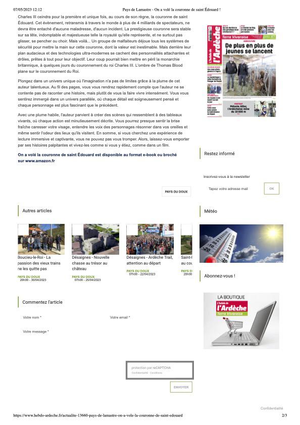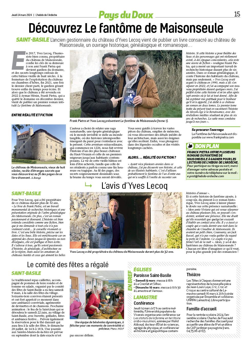 Dans un article paru aujourd’hui, La Dépêche titre : « Cette maison nous parle, elle bouge » et salue ce roman qui mêle patrimoine, mémoire et présence fantomatique.